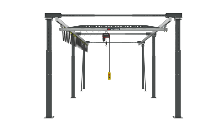 Der fahrbare Bockkran PA kommt an wechselnden Arbeitsplätzen zum Einsatz, wo eine Last bis 3'200 kg nur gelegentlich transportiert werden muss.